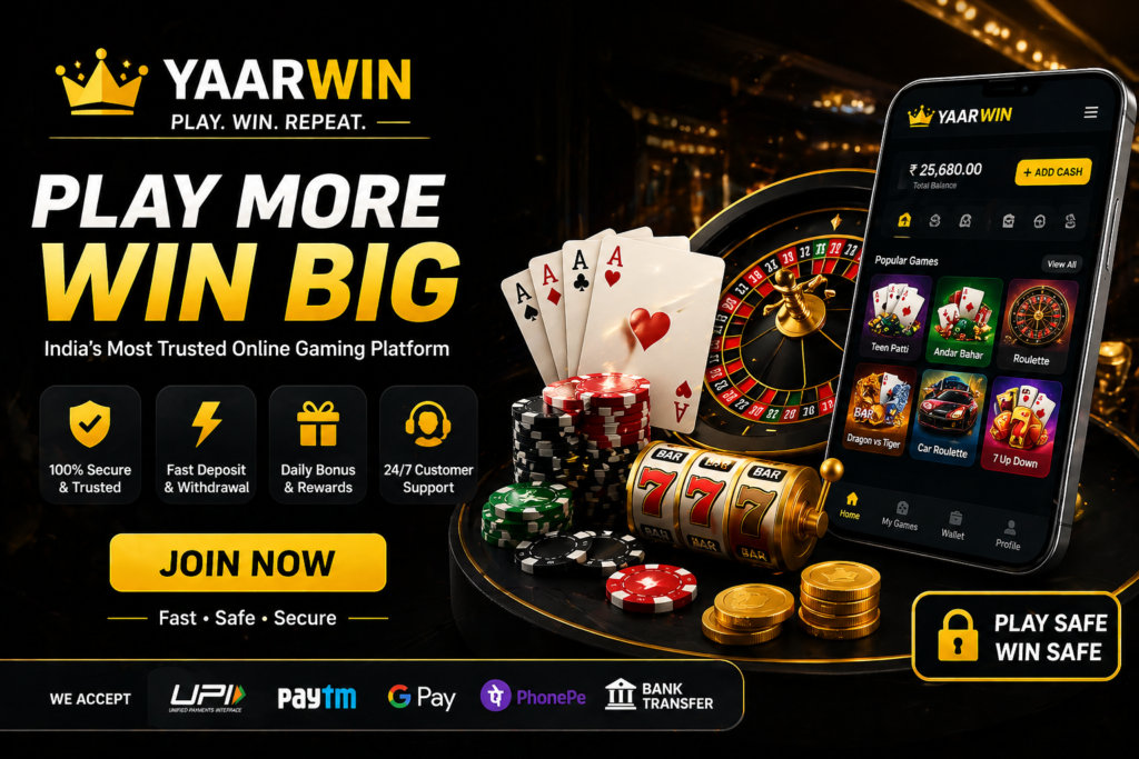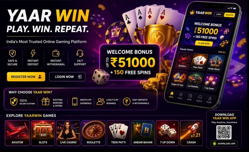 YaarWin India ka ek fast-growing online gaming platform hai jahan aap Aviator game, casino games, slots aur real money earning games khel sakte hain. Yeh platform specially Indian users ke liye design kiya gaya hai jisme fast withdrawals, secure payments aur high bonus system milta hai.